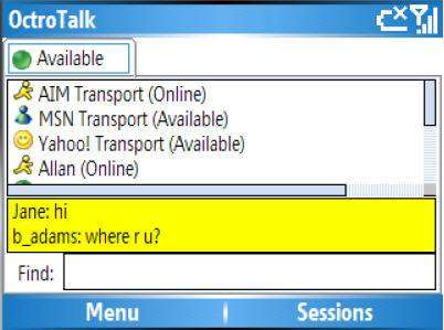Octro Talk ofrece mensajes instantáneos para los móviles con una completa integración de voz. Este producto que está siempre conectado te permite conectarte con tus amigos y tus amigos llegarán hasta ti allá donde estés. Trabaja de forma fluida y correcta con GPRS, EDGE, CDMA, Wifi y conexiones Bluetooth y reduce tus facturas de teléfono