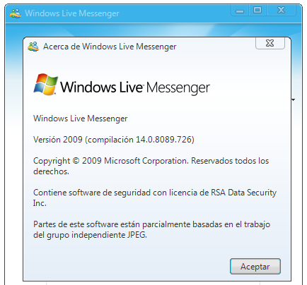 Se acaba de publicar una nueva actualización de Windows Live Messenger 9, la compilación 14.0.8089.726. ¿Cómo conocer la versión instalada? sólo tienes que hacer clic en el menú «Ayuda» – «Acerca de Windows Live Messenger».